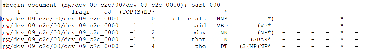""" dev数据集有错误;改变一下错误索引 """ BEGIN_DOCUMENT_REGEX = re.compile(r"#begin document \((.*)\); part (\d+)") def devtoture(gold_path): with open(gold_path, "r") as gold_file,open('users_new.txt', 'w') as output_file: for line in gold_file.readlines(): row = line.split() if len(row) == 0: output_file.write("\n") elif row[0].startswith('#'): begin_match = re.match(BEGIN_DOCUMENT_REGEX, line) if begin_match: partnum = row[4] print(partnum) output_file.write(line) else: if row[1] != partnum: print("不相等") len0 = len(row[0])+3 lineout=line[:len0]+partnum[0]+line[len0+2:] output_file.write(lineout) else: output_file.write(line)