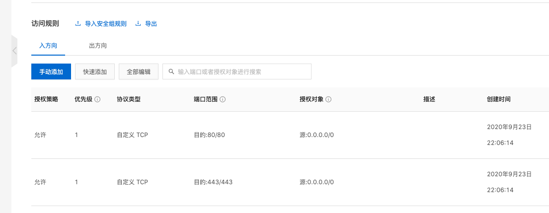 在手动添加中添加8888/8888,授权对象为0.0.0.0/0。