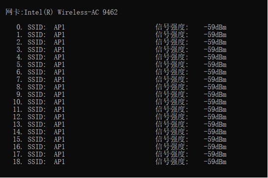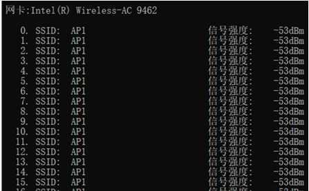 通过本次的实验测量了在不同的距离、天气、阻挡物的情况下对WiFi的RSSI值的影响,RSSI值越大,信号越好,距离越远,RSSI值越小,在有大风或者雨天的情况下也会对RSSI值产生影响,水泥墙、铁门等阻挡物对于RSSI值影响较大,会导致WiFi信号变差,在晴天、无风、无遮挡物的情况下WiFi信号会比较好,影响比较小,知道了在何种情况下会影响WiFi信号。