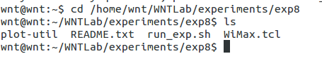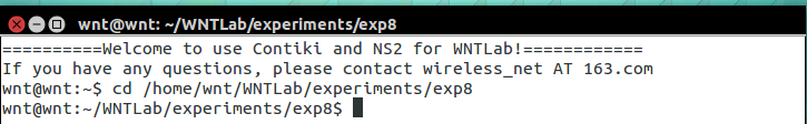 输入”cd /home/wnt/WNTLab/experiments/exp8”进入实验脚本所在的目录