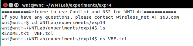 (1)输入"cd WNTLab/experiments/exp14"进入本实验脚本所在目录。
