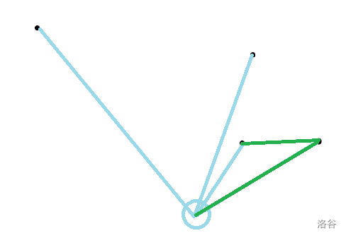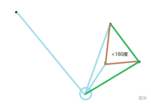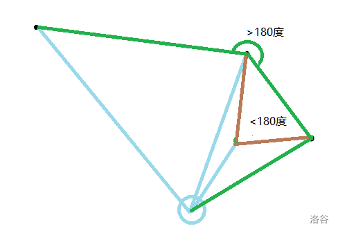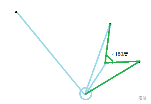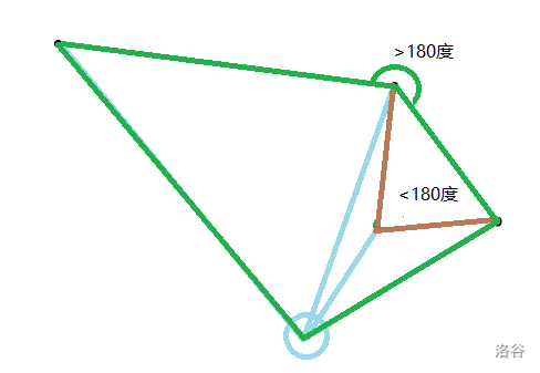 好,问题来了现在相邻的边的夹角<180度了,此时显然有一种更优的情况: