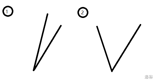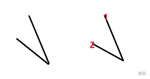 于是这个柿子 \(>0\) 的意义是 \(k_{\overrightarrow{b_1b_2}}-k_{\overrightarrow{a_1a_2}}>0\)