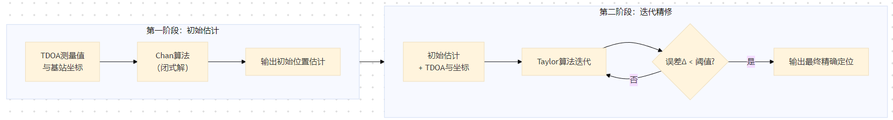 | 适用场景 | 非常适合作为初始估计器。 | 适合在良好初始值下进行最终精度提升。 | 兼顾实时性(Chan) 与高精度(Taylor),是工程实践中的优选方案。 |