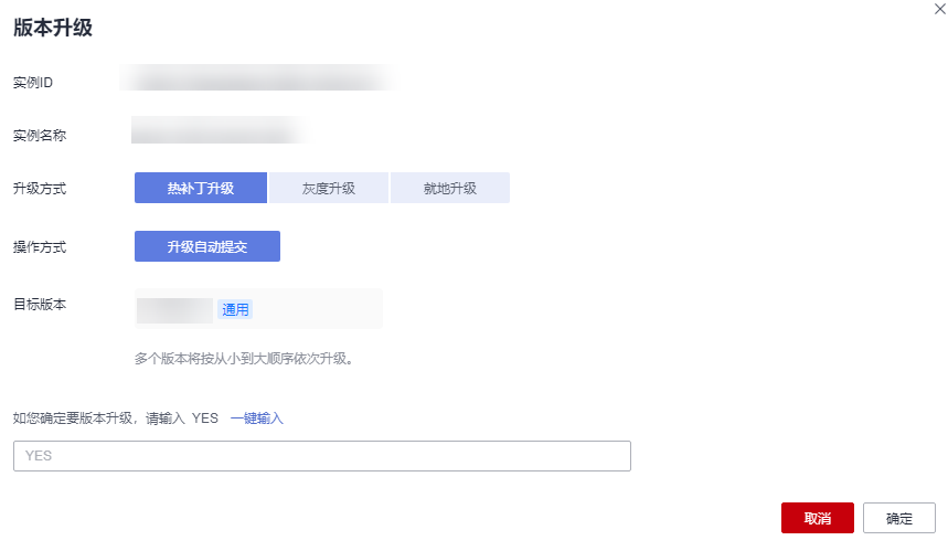 • 如果升级过程中出现异常导致升级失败,系统会自动对实例进行回退,您可以联系技术支持,由工程师给出分析评估后重新执行升级。