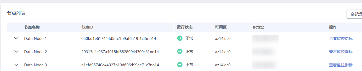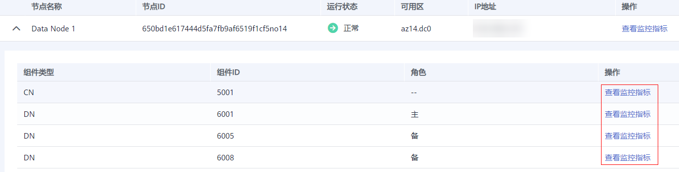 3. 在实例详情页的“节点列表”处,单击“节点名称”后的“查看监控指标”,进入监控指标概览页。