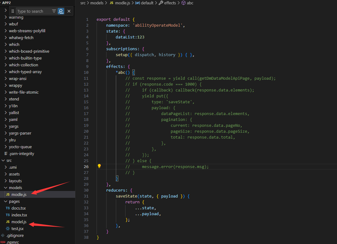 在src下新建modles文件或者在每一个对应的jsx文件下新建modle.js文件