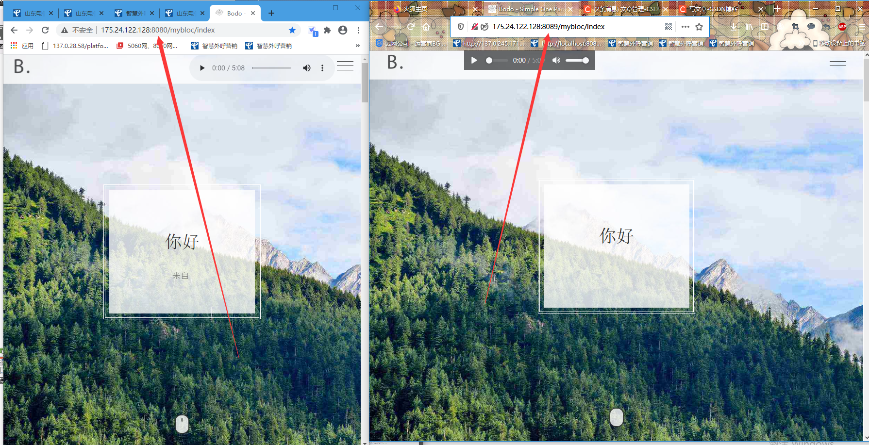 已下是测试结果,可以看到分别访问nginx和tomcat的端口,最终都访问到了tomcat,说明配置成功