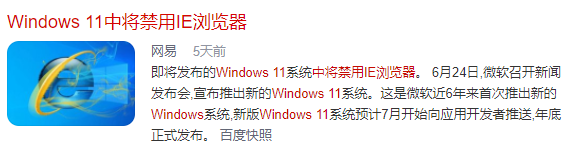 前段时间微软刚刚宣布:从2022年6月15日, Windows系统将不再支持IE浏览器,而近期要发布的 Windows11,也将彻底禁用IE浏览器。