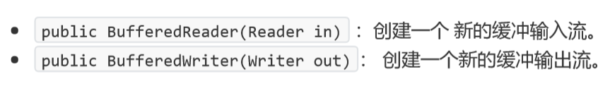 缓冲流:字节缓冲输出流BufferedOutputStream、字节缓冲输入流BufferedInputStream、字符缓冲输出流BufferedWriter、字符缓冲输入流BufferedInput