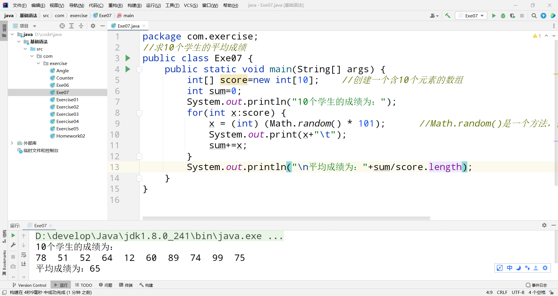 int scorc[]={0,1,2,3,4,5,6,7,8,9} //此时数组空间为10通过数组的length属性可得到数组元素的个数。如,score.length即为数组score的长度
