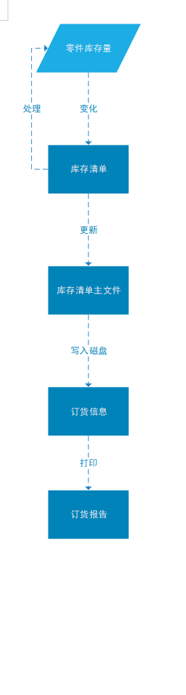 库中零件数量有变化时,应该及时修改库存清单主文件;如果哪种零件的库存量少于它的库存量临界值,则应该报告给采购部门以便