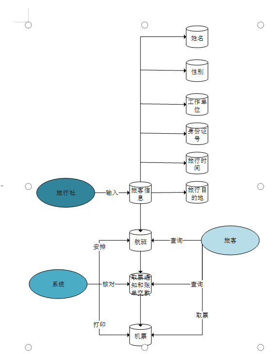 为了方便旅客,某航空公司拟开发一个机票预定系统。旅行社把预定机票的旅客信息(姓名、性别、工作单位、身份证号码、旅行