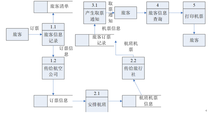 询航空公司内的航班数据服务器后,为旅客安排航班,印出取票通知。旅客在飞机起