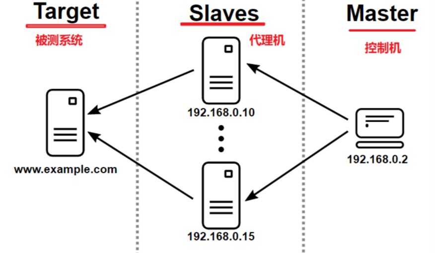 - 分布式测试时通常由1台控制机和N台代理机