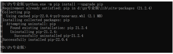 - 如果出现pip关键字,导致Scrapy不能安装的原因是pip版本过低。报错中也给出了提示。我们只需要找到Python安装地址的上级目录输入以下命令。