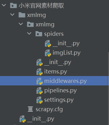 scrapy startproject 自定义文件名 #我的工程文件名叫xmImg