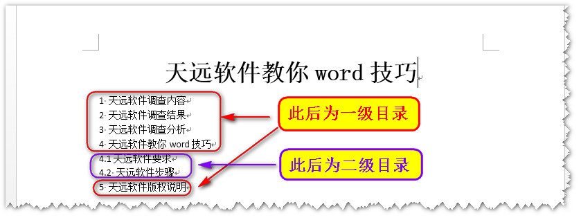 3.现在我们要告诉软件上面写的1,2,3,4,4.1,4.2,5现在都是目录,而且分一级和二级。