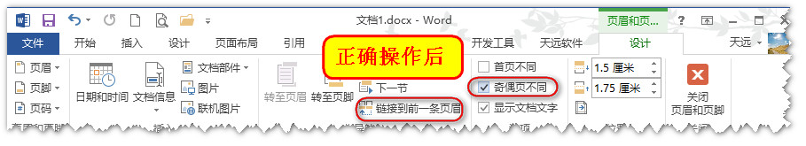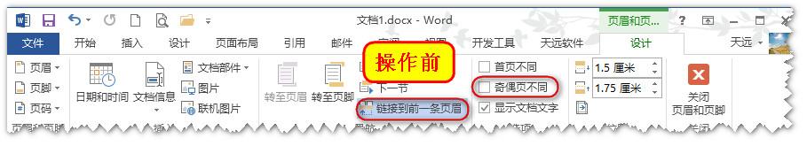然后去掉"链接到前一条页眉"选项,这是全文的重点。成败这举。同时勾选"奇偶页不同"如图: