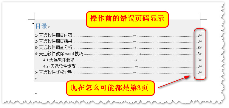 我们回头看一下目录,显然,现在上面的页码是错的了。那么我们就要改过来,