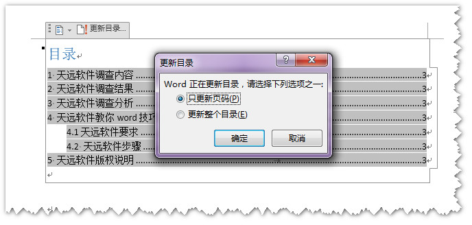 那么,我们选择”只更新页码”还是“更新整个目录”呢。