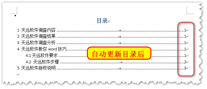 好,我们试试这两个功能,先选择”只更新页码”。我们发现,目录中的页码和正文的内容是一致了,如图: