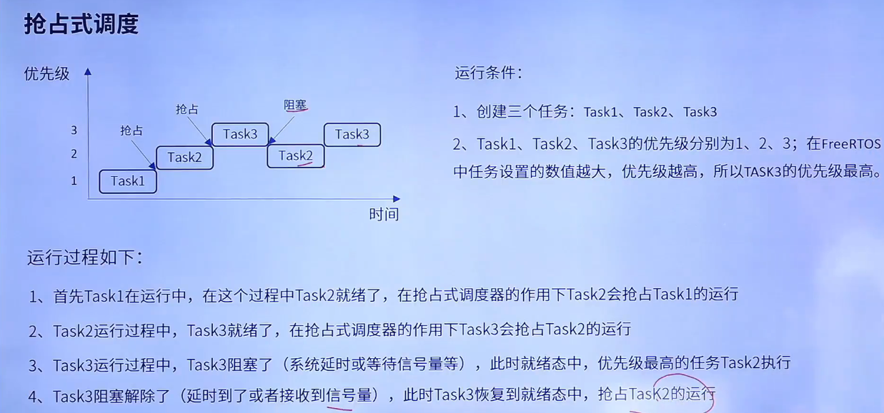 主要是针对优先级不同的任务,每个任务都有一个优先级,优先级高的任务可以抢占优先级低的任务。
