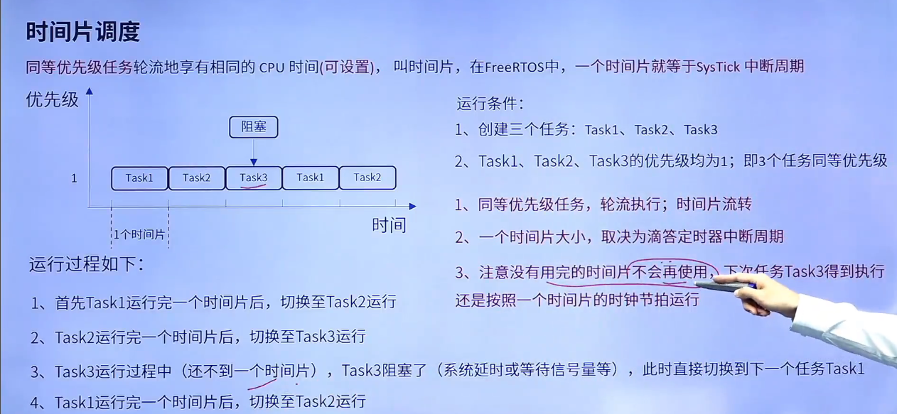 - 注意没有用完的时间片不会再使用,下个任务Task3得到执行还是按照一个时间片的时钟节拍运行。