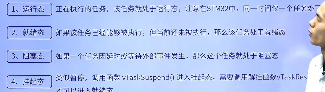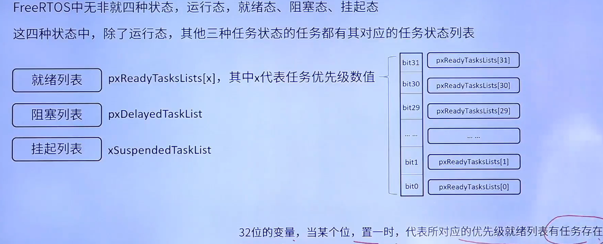 FreeRTOS中任务共存在4中状态:运行态、就绪态、阻塞态、挂起态