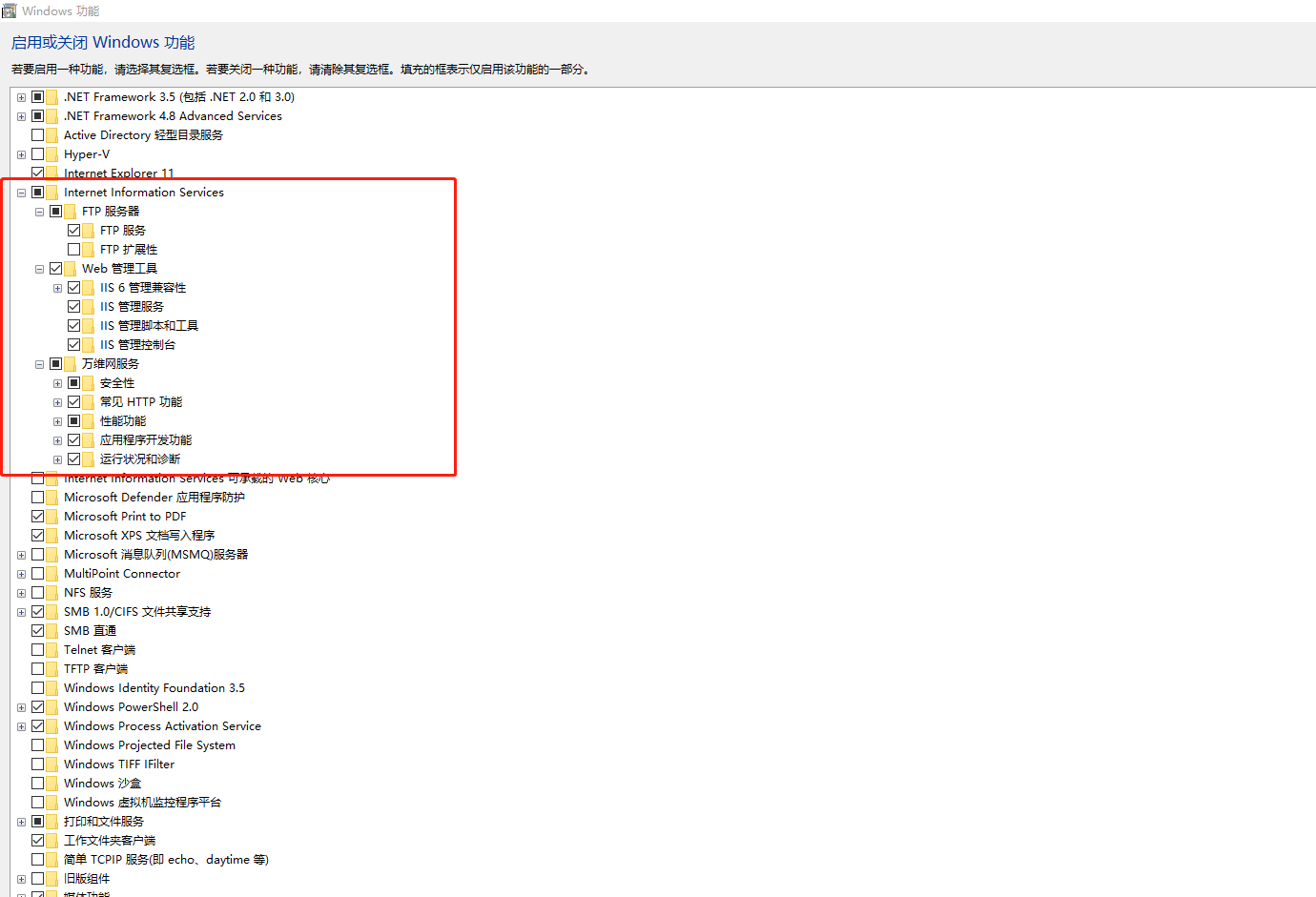 场景:电脑重装,发布本地自己写的Web服务,设置Web管理工具勾选完成后,点击重启,发现有又恢复没有勾选状态,采取解决方法一解决此问题