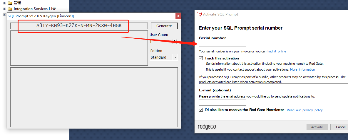 3、打开激活软件, 把代码复制到注册机中间的文本框内就会生成相应的代码