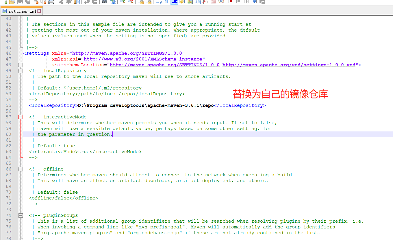 3、在apache-maven-3.6.1\conf替换settings,然后设置为自己的镜像仓库