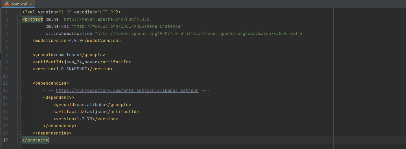 5、设置maven项目后,会出现pom.xml文件,点击pom.xm文件进行依赖安装