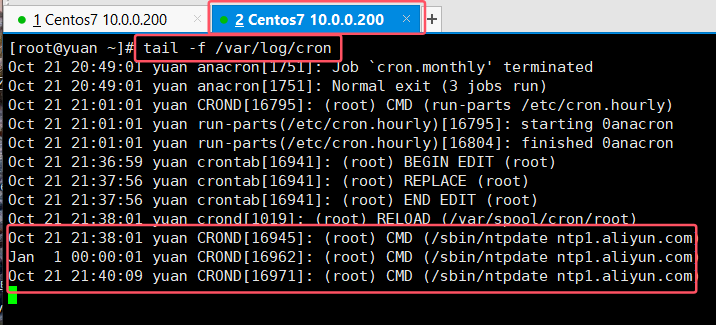 [root@yuan ~]# crontab -l no crontab for root # 用户未设置定时任务 [root@yuan ~]# crontab -e no crontab for root - using an empty one # 用户未设置定时任务,给你创建一个空的 crontab: installing new crontab # 更新了新的定时任务的配置