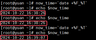 echo ${dir} # 写入命令(变量中存放的时命令的结果) now_time=`date +%F_%T` echo $now_time