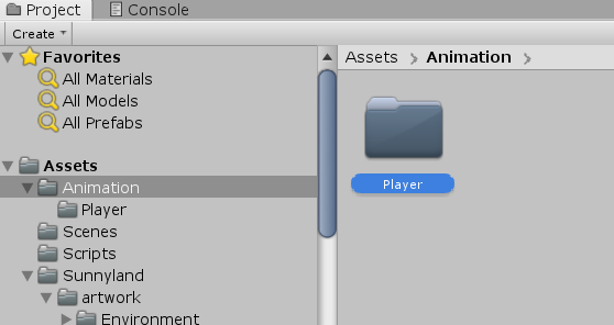 首先我们可以在Animation文件夹里创建对应对象的文件夹来便于管理我们的对象动画(比如在做游戏时不仅又我们控制的角色,还有敌人,道具等)