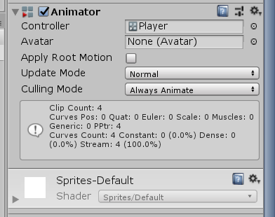 再在我们创建的Player中创建一个Animation Controller文件,并把它拖拽到我们创建的Player的Animator中