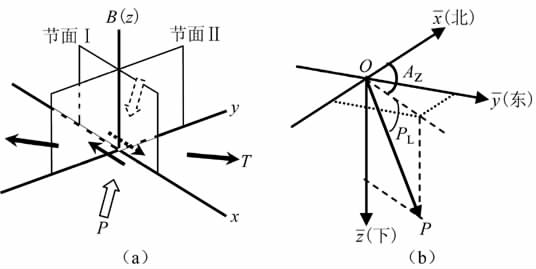 P、T、B 轴不是方向单一的矢量,都可取两个互为相反的方向。通常给出下倾方向的方位角和倾角。