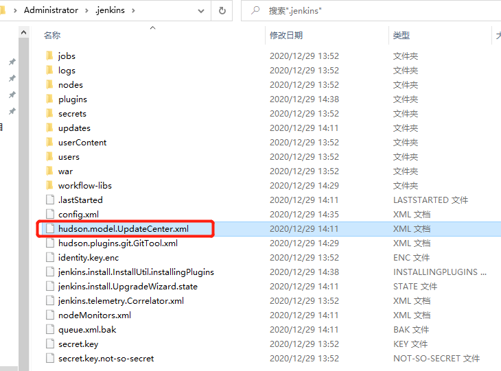 3-2:点击文件“hudson.model.UpdateCenter.xml”