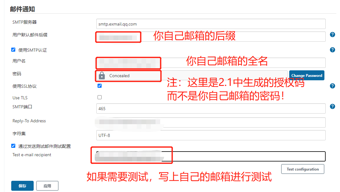 这里的邮箱配置应该是与“邮件通知”处的邮箱保持一致的。