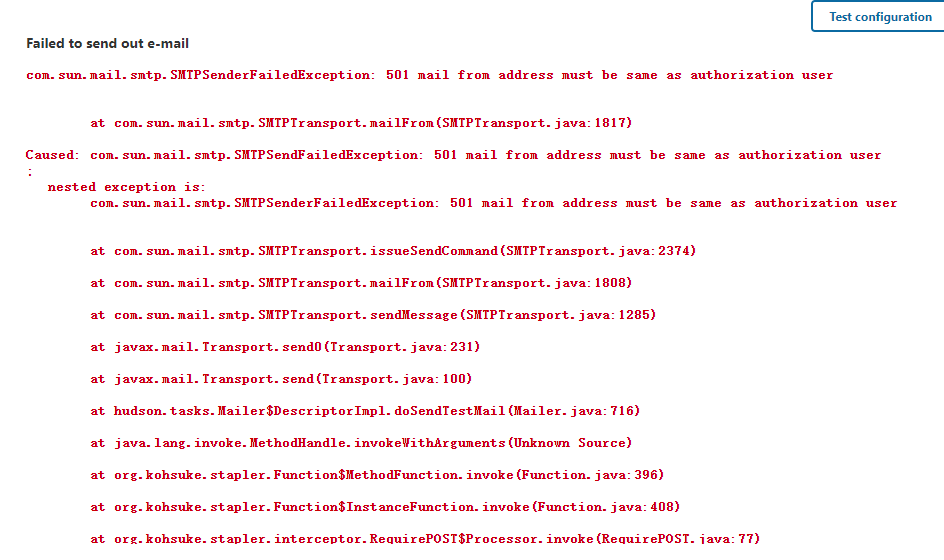 ③在配置好邮箱之后,也一度不能测试成功,而且报501的错