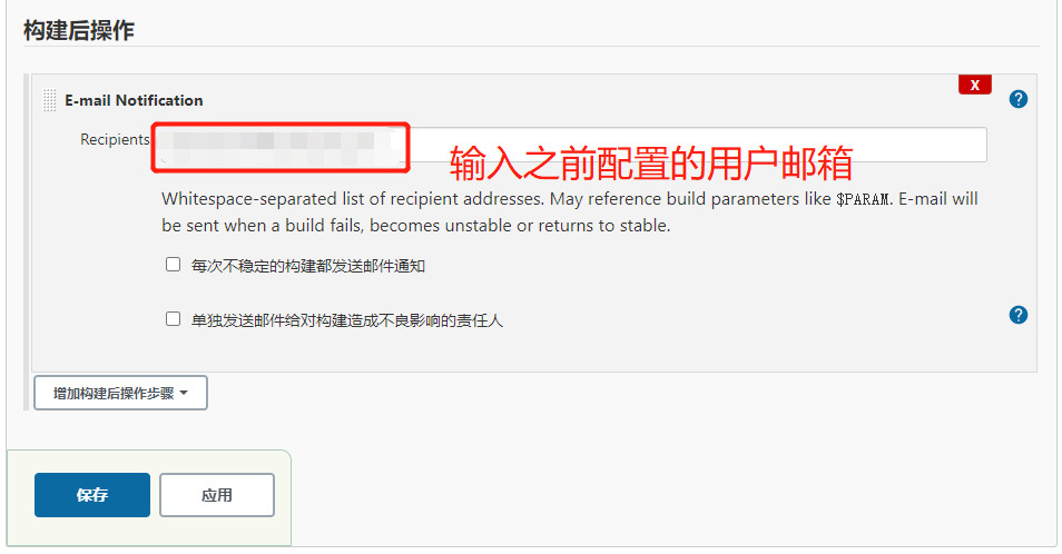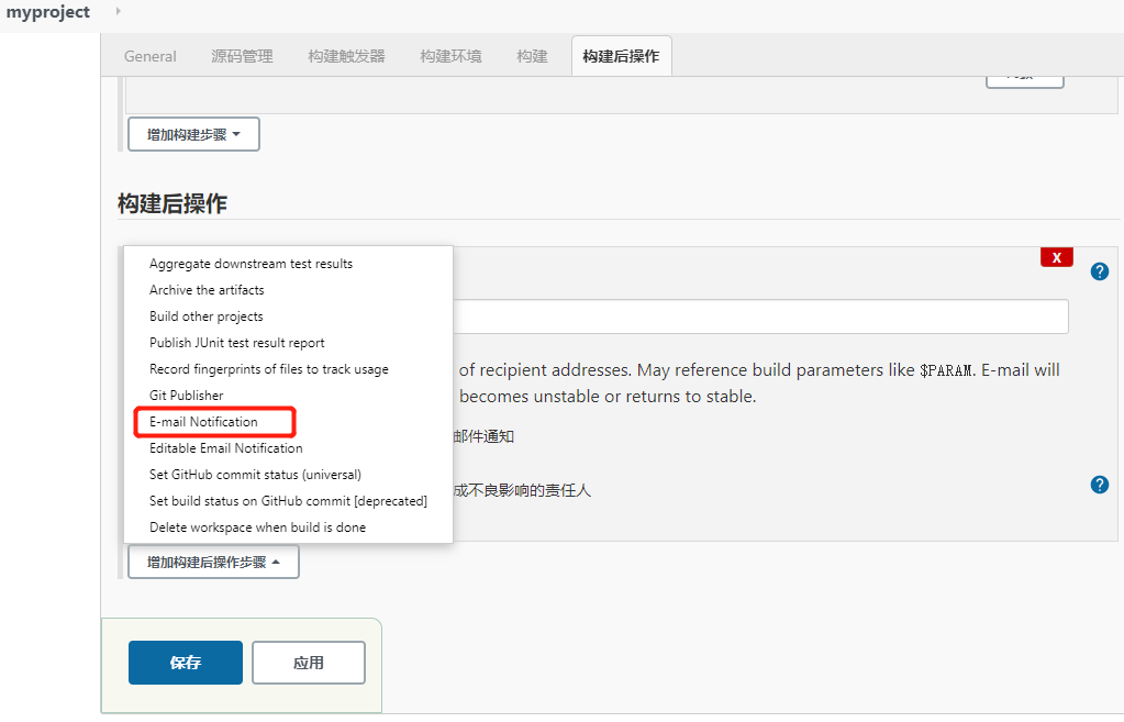 3.3 选择“增加构建后操作步骤 -- E-mail Notification”