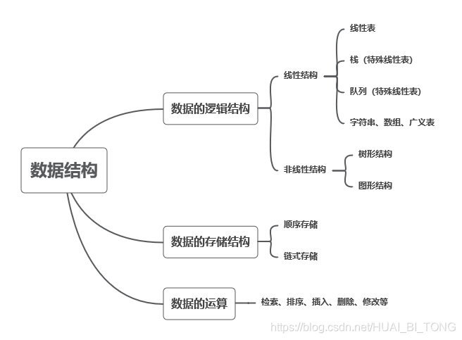 数据结构: 按照逻辑关系组织起来的一批数据,按一定的存储方法把它存储在计算机中,在这些数据上定义了一个运算的集合。