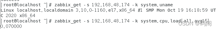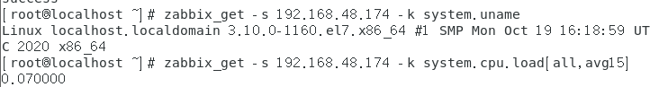 二、如何使用zabbix (一)、Agent端安装配置 1、安装Agent [root@localhost ~]# yum -y install zabbix-agent 2、配置zabbix-agent [root@localhost ~]# vim /etc/zabbix/zabbix_agentd.conf 3、启动zabbix-agent [root@localhost ~]# systemctl start zabbix-agent [root@localhost ~]# systemctl enable zabbix-agent 4、配置防火墙与Selinux [root@localhost ~]# firewall-cmd --zone=public --add-port=10050/tcp –permanent (二)、测试连通性 [root@localhost ~]# zabbix_get -s 192.168.48.174 -k system.uname [root@localhost ~]# zabbix_get -s 192.168.48.174 -k system.cpu.load[all,avg15]