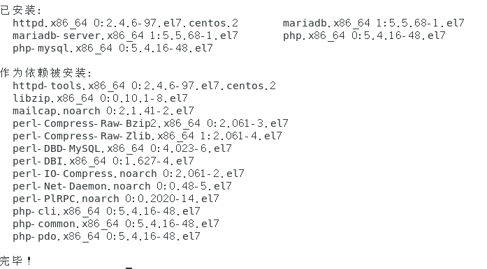 2、配置Selinux与防火墙 [root@localhost ~]# firewall-cmd --zone=public --add-port=80/tcp --permanent success [root@localhost ~]# firewall-cmd --reload Success 3、测试apache [root@localhost ~]# systemctl start httpd [root@localhost ~]# systemctl enable httpd Created symlink from /etc/systemd/system/multi-user.target.wants/httpd.service to /usr/lib/systemd/system/httpd.service. 4、配置数据库 [root@localhost ~]# systemctl enable mariadb Created symlink from /etc/systemd/system/multi-user.target.wants/mariadb.service to /usr/lib/systemd/system/mariadb.service. [root@localhost ~]# systemctl start mariadb [root@localhost ~]# mysql_secure_installation