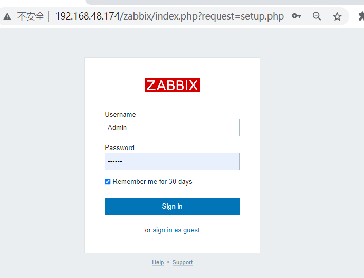 管理员用户名为:Admin 密码:zabbix
