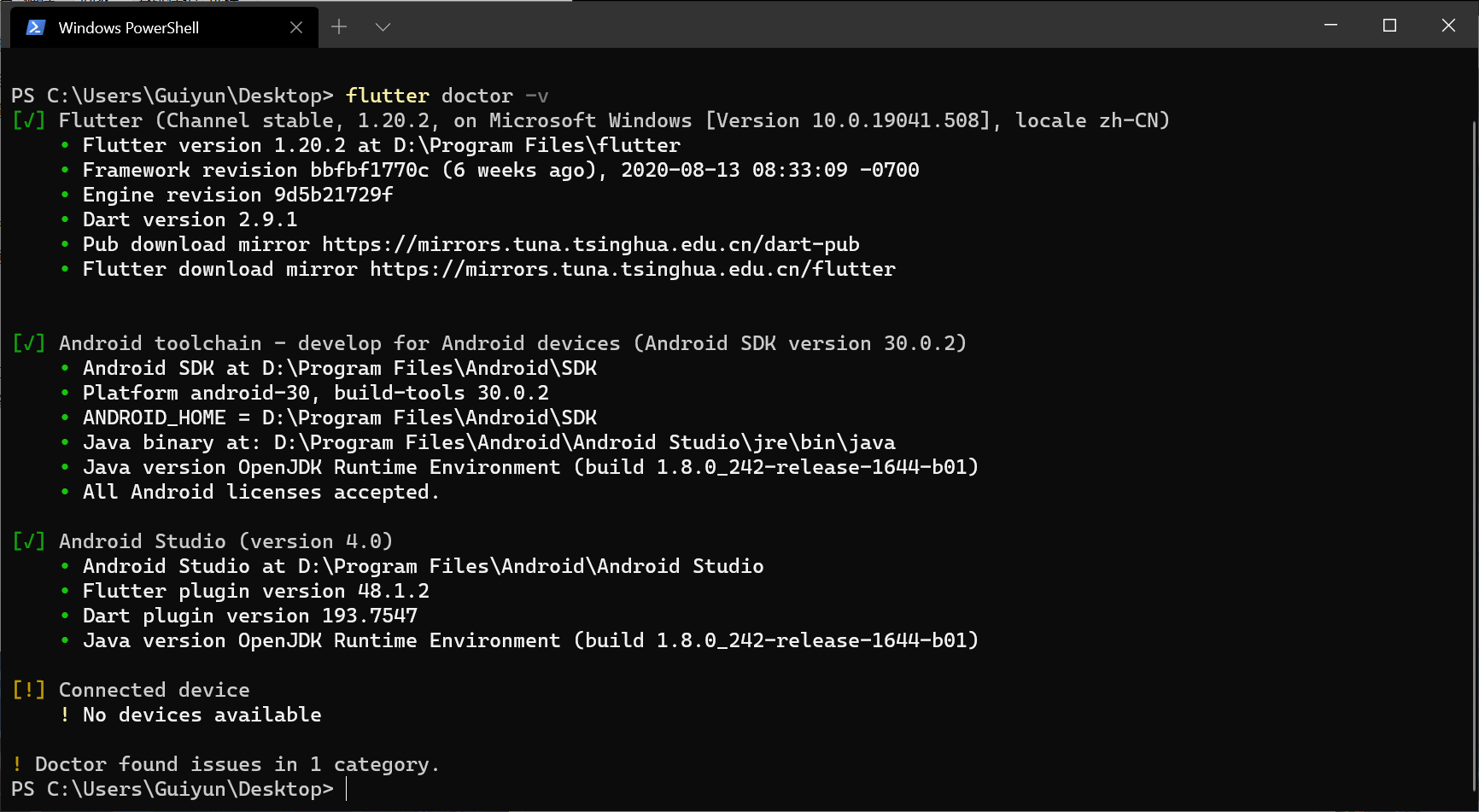 新建FLUTTER_STORAGE_BASE_URL变量https://mirrors.tuna.tsinghua.edu.cn/flutter