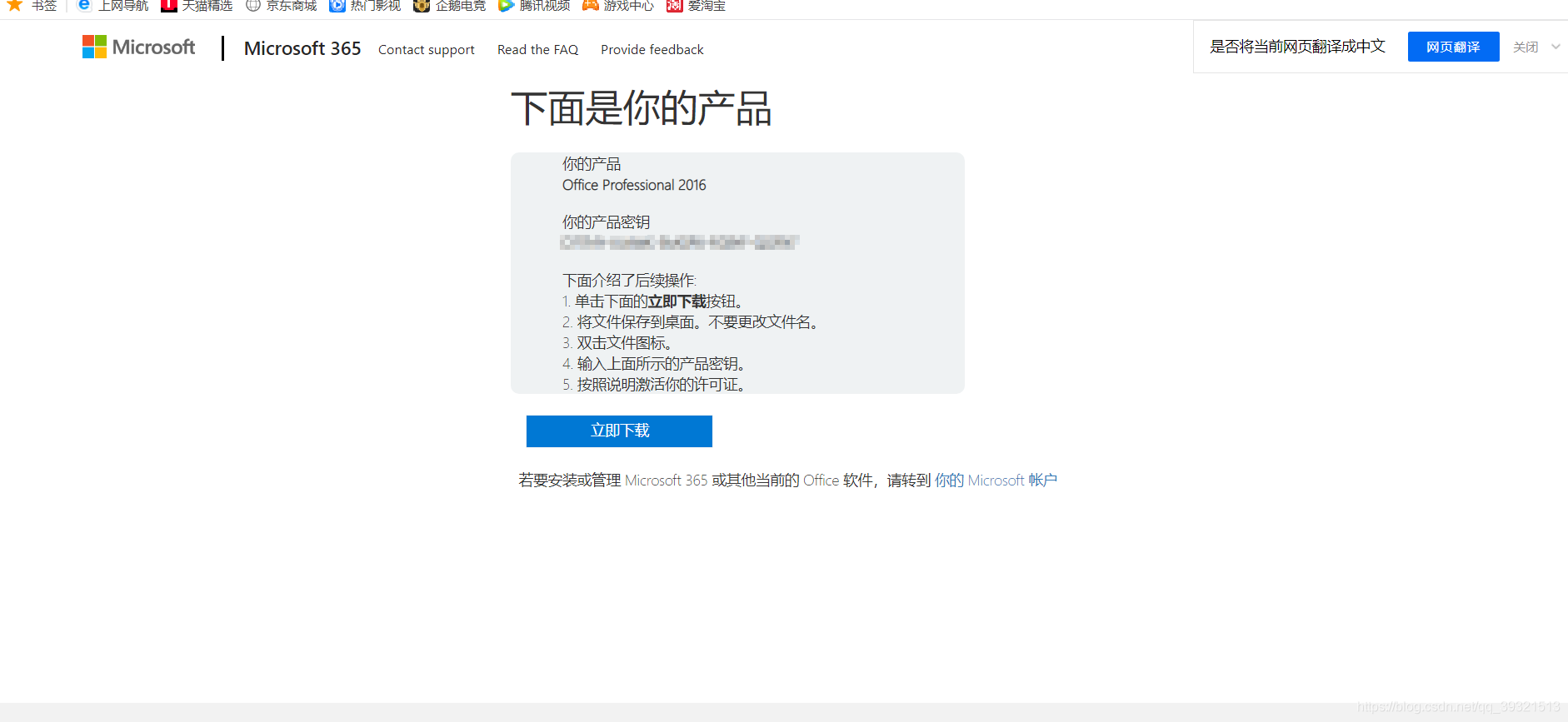 就会出现这个页面(中间可能会先出现一个页面,显示让你输入产品密钥,你找找有一个链接是通过你的microsoft账户进行安装 然后就会变成这个页面)