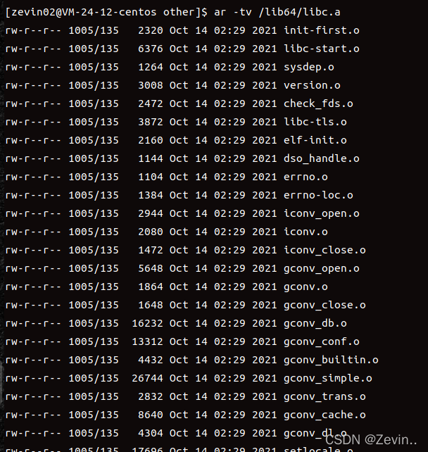我们可以查看c标准静态库中的内容都是.o
