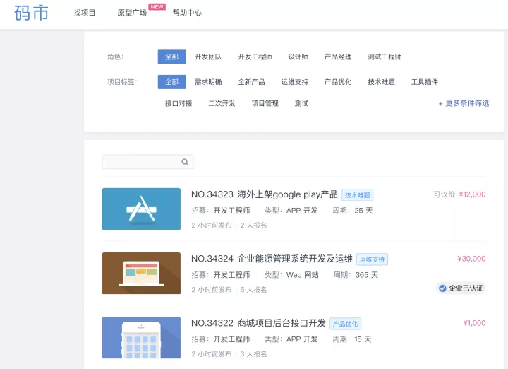 程序员可以接单的私活有网站开发、APP开发、公众号开发等,有原型广场可提供素材,支持驻场开发相关的招聘。